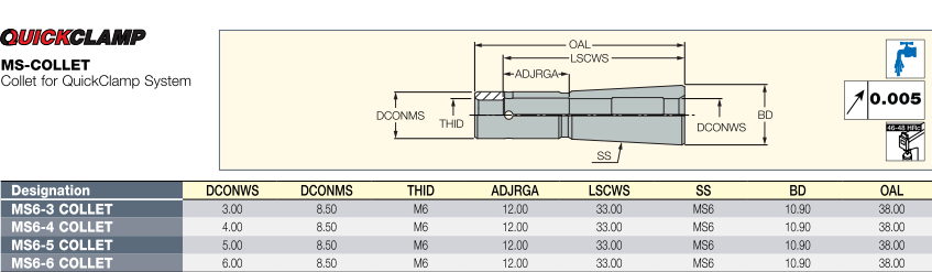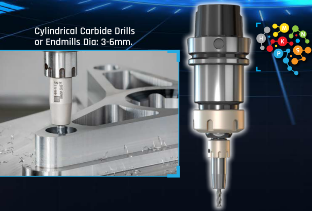 Миниатюрный цанговый механизм (адаптер, патроны), для крепления малоразмерных твердосплавных инструментов в стандартные цанговые патроны. Это позволяет улучшить доступ инструмента в узких полостях и вблизи боковых стенок. При этом обеспечивается высокая жесткость закрепления инструмента и точность позиционирования.