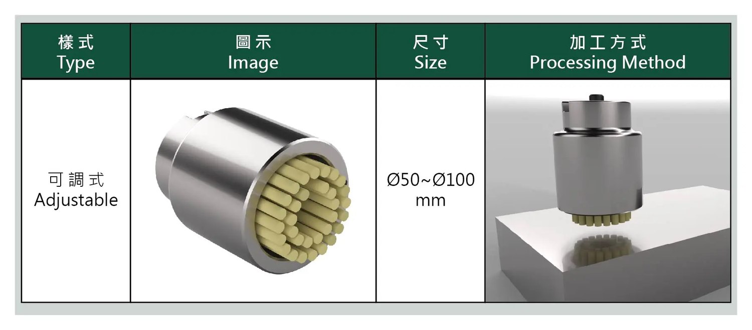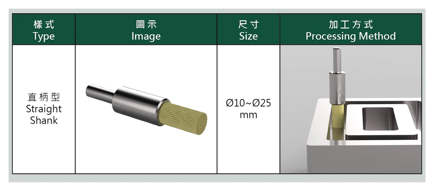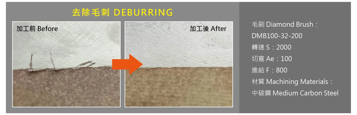 Удаление заусенцев: Заусенцы — распространенный дефект при механической обработке, влияющий на сборку изделия и потенциально создающий угрозу безопасности. Алмазные абразивные щетки легко удаляют заусенцы с кромок заготовок, улучшая качество и безопасность продукции.