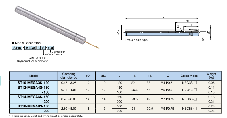 Так к примеру цанговые патроны от Big Diashowa имеет наружный диаметр зажимной гайки 10 мм, что весьма меньше. Или к примеру Slim патроны и удлинители с наружным диаметром со стороны крепления инструмента 10-14 мм.
