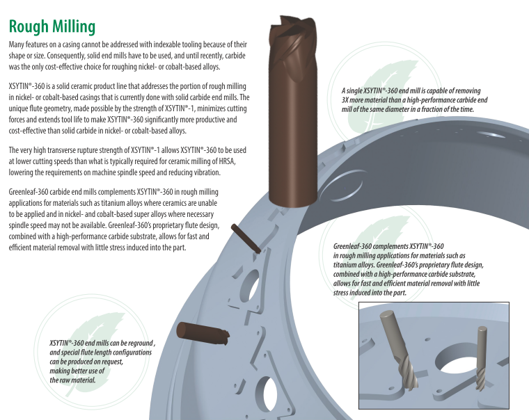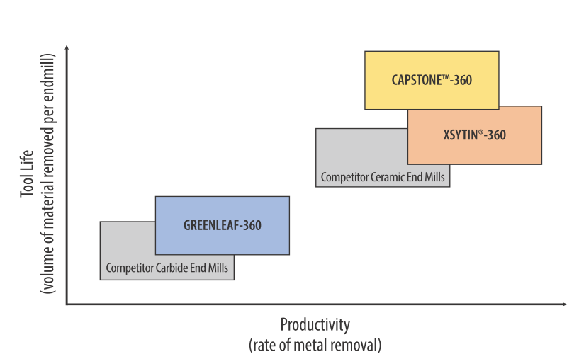 Capstone™-360 — новая линейка высокопроизводительных концевых фрез, сочетающая керамический наконечник с твердосплавным хвостовиком, обеспечивающая до 50% больший срок службы инструмента по сравнению с большинством представленных на рынке цельнокерамических концевых фрез. Разработаны для превосходной производительности при обработке жаростойких суперсплавов и некоторых видов чугуна. Capstone™-360 отлично подходит для таких задач, как фрезерование пазов, карманов и торцевое фрезерование.