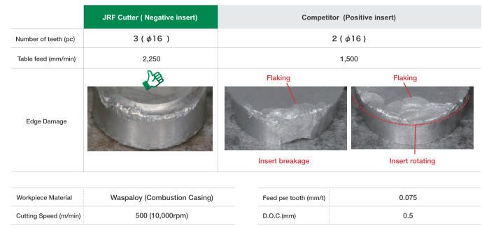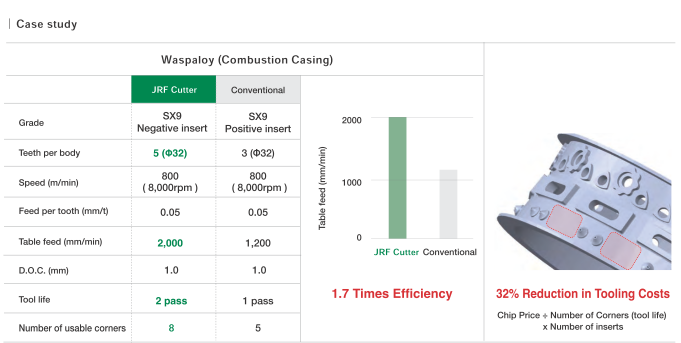 Производительность : повышена в 1,7 раза благодаря многолезвийной конструкции режущего инструмента JRF , что обеспечивает более эффективное удаление материала.