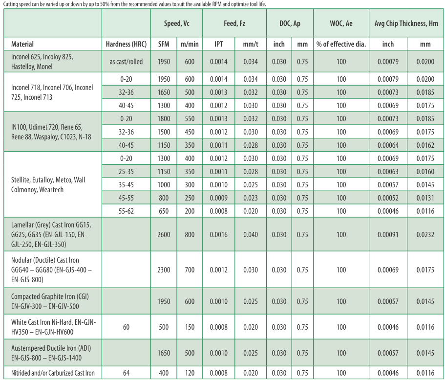 Торцевое фрезерование только с максимальной глубиной резания (DOC) 1,25 мм. Не предназначено для бокового фрезерования с большой глубиной резания (DOC). Для оптимальной производительности поддерживайте глубину резания (DOC) на уровне 0,020–0,030 дюйма (0,5–0,75 мм).