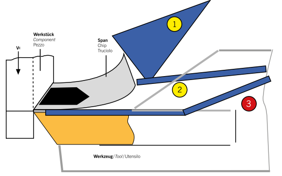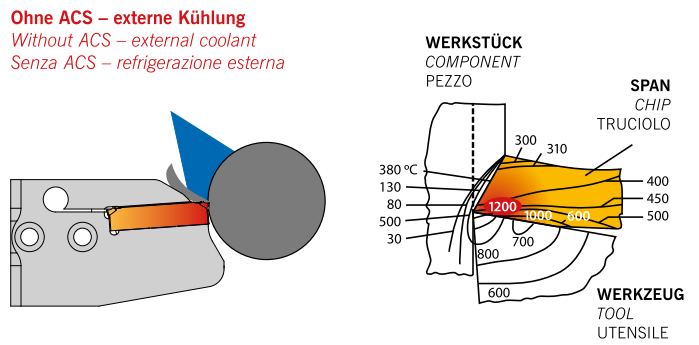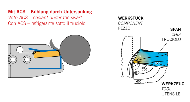 Гидравлический клин поднимает стружку, снижает температуры в зоне резания, улучшает стружкодробление