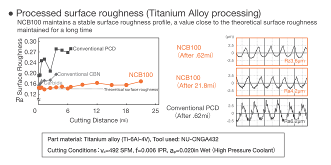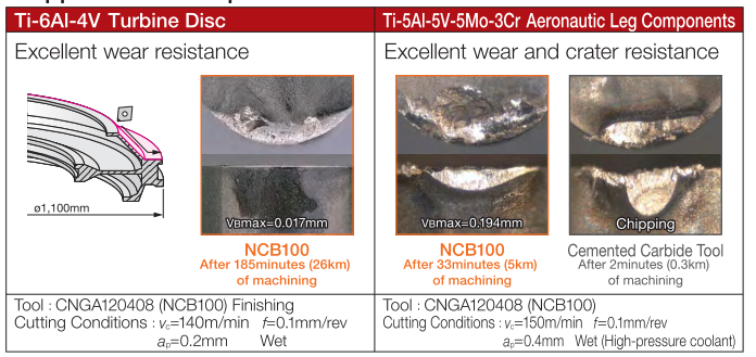 Благодаря более высокой твердости и теплопроводности по сравнению с обычными марками CBN, он обеспечивает высокую эффективность и длительный срок службы при обработке труднообрабатываемых материалов, таких как титановые сплавы и сплавы Co-Cr.