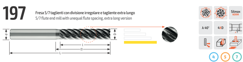 - переменные углы спирали, уменьшающие гармоники и вибрации.